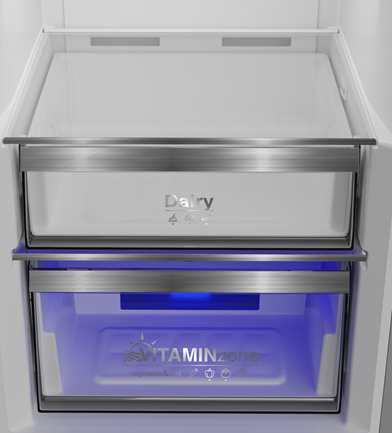 VitaminZone harnesses the power of nature inside your fridge freezer. Using LED light to simulate the cycle of the sun, this not only reduces waste by keeping your fruit and vegetables tasting fresh for longer, but also retains more of the essential nutrients and vitamins. Stylish and simple to use, this expertly designed larder fridge features a touch control display that can be used to activate the Holiday Mode, Quick Cool, and Fast Freeze settings with ease. For guaranteed freshness, our intelligent IonFresh technology produces odour-neutralising ions that remove bacteria and bad odours, making sure the air inside your fridge is always fresh and clean.