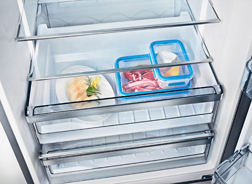 As well as dual cooling fans, Grundig refrigerators feature a quick cool button. Activate this button before you leave on your shopping trip and it will lower the overall temperature of the fridge, so when you fill it with shopping the temperature will not rise too much. This faster cooling technology also helps to keep food fresh for longer, and can quickly chill food.